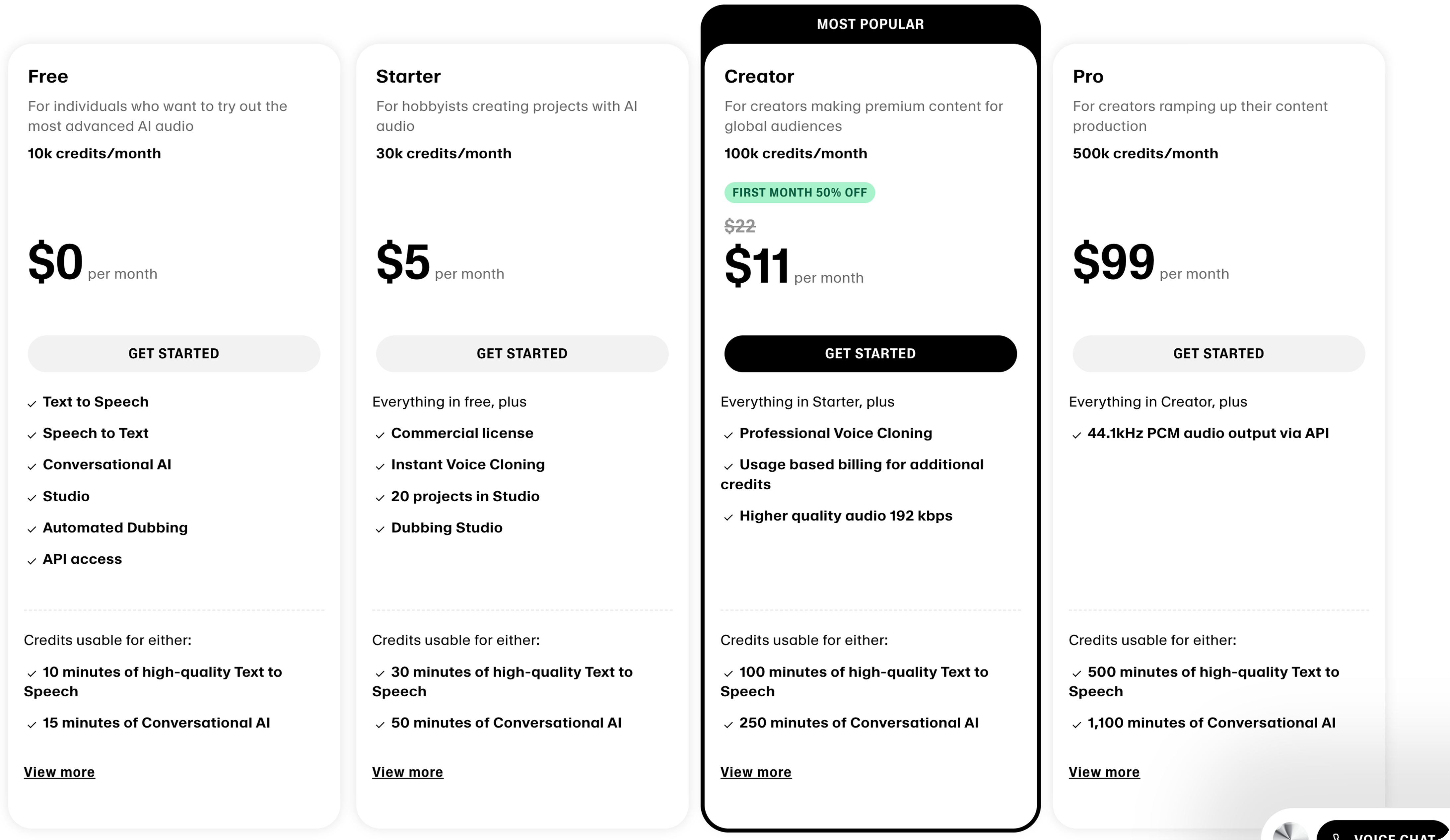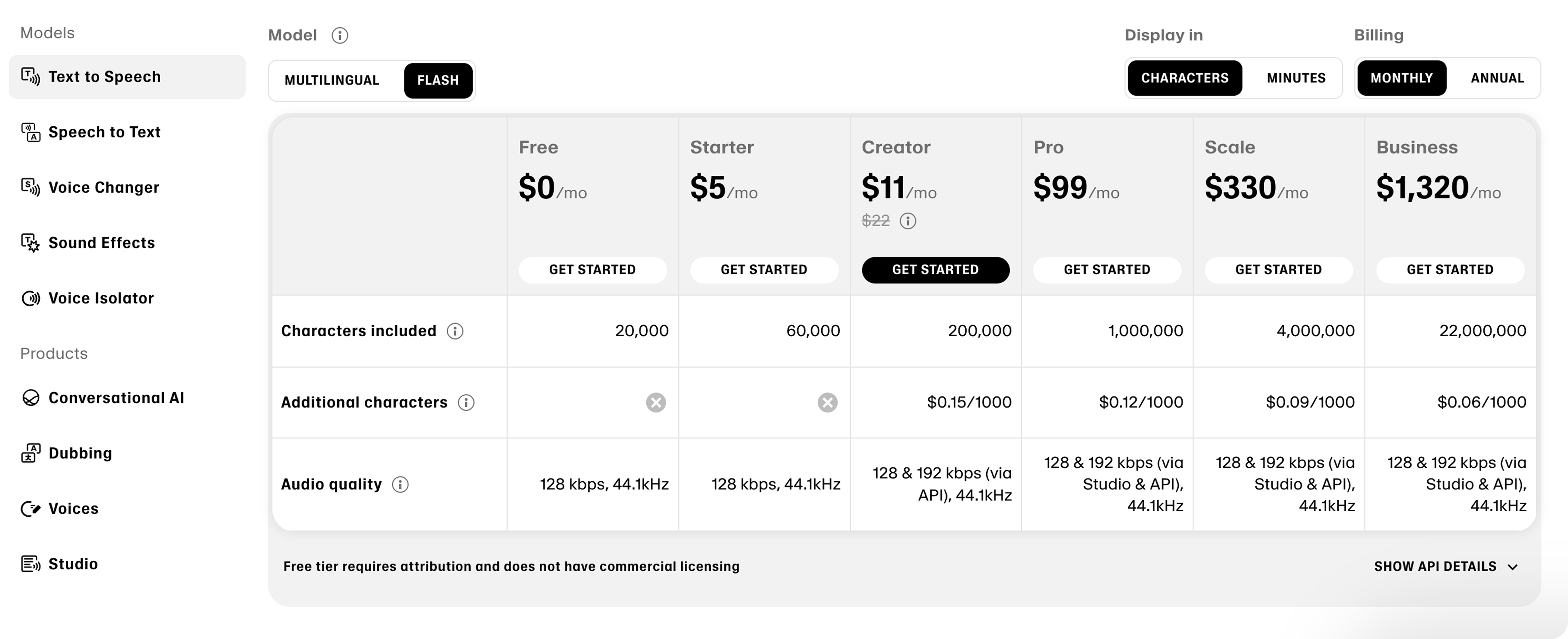 Now, create the subscription plans based on the latest tiers from the ElevenLabs pricing page.
